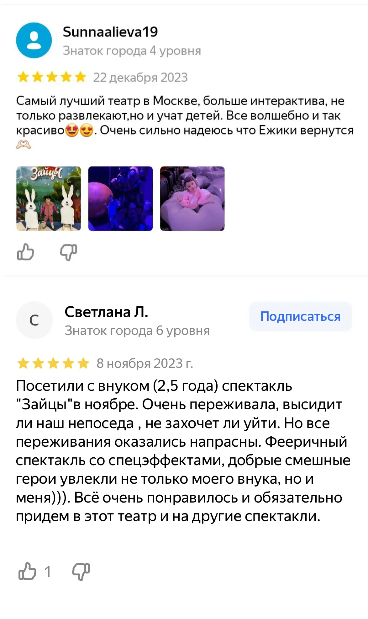 - Если во время спектакля вам или вашему ребёнку что-то понадобилось наши администраторы всегда находятся в зале и придут вам на помощь.