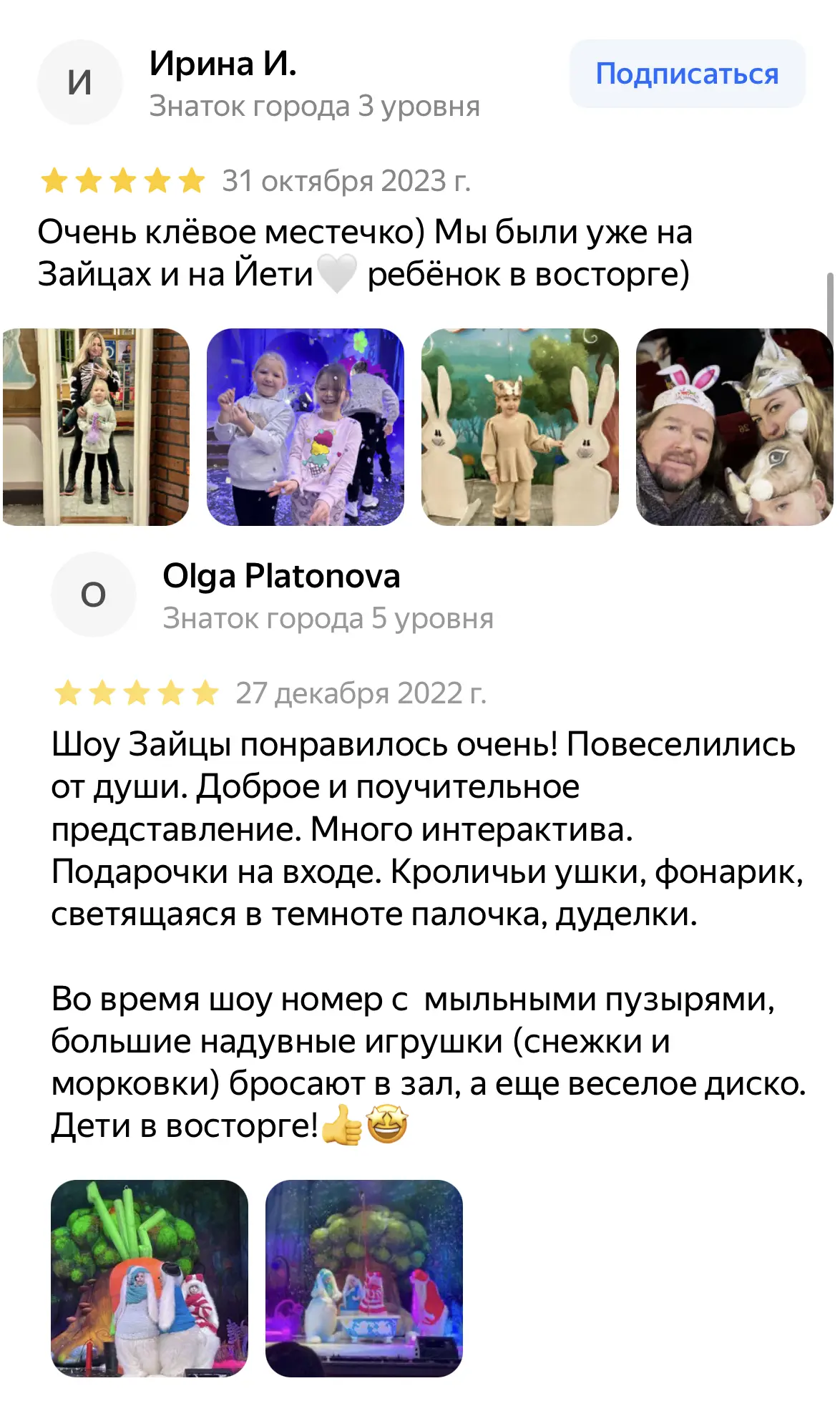 - Перед началом спектакля гостей развлекают наши плюшевые аниматоры. Поэтому смело можно приезжать заранее и начать погружение в атмосферу за 20-30 минут до начала.