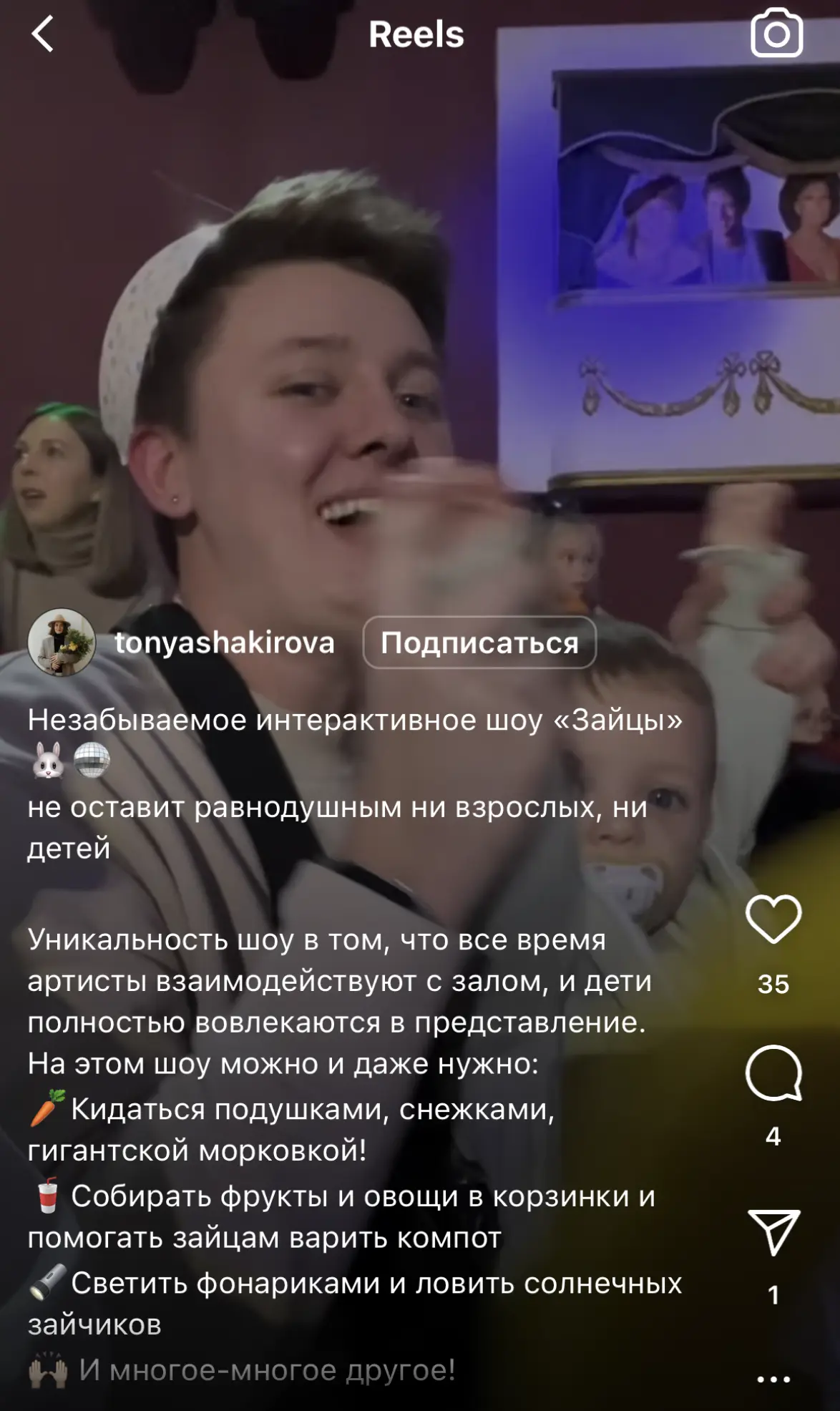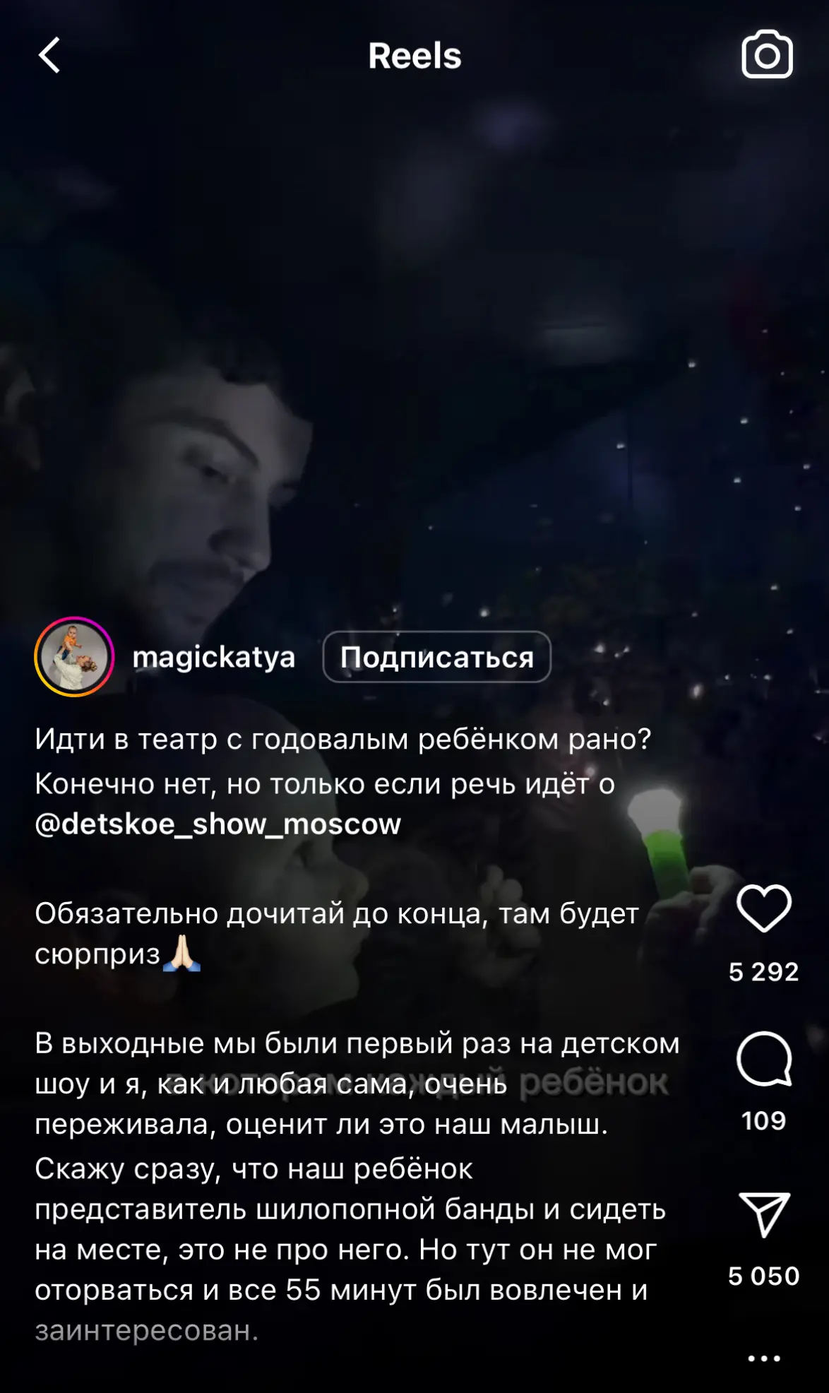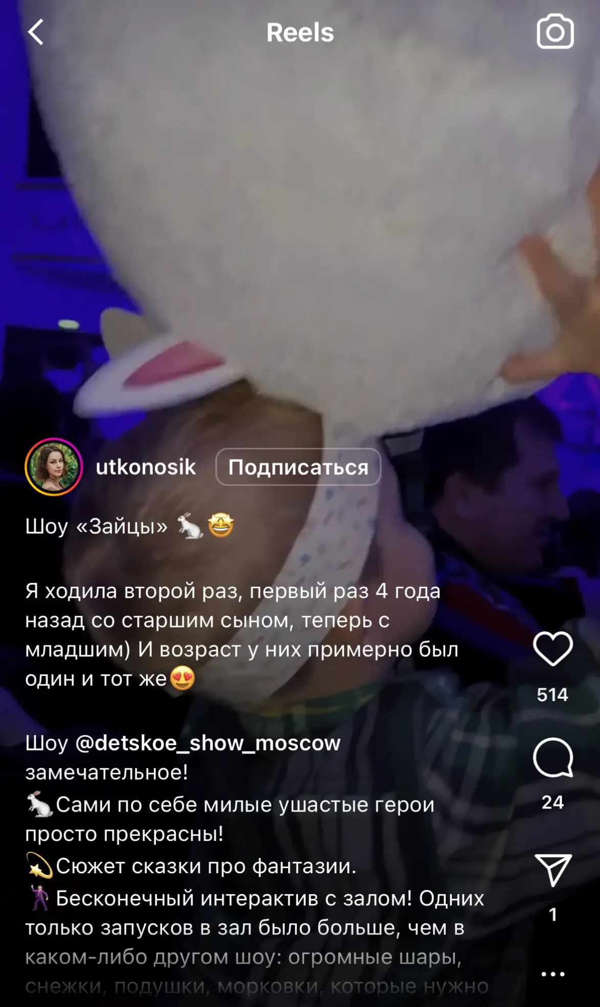- Представление длится 55 минут. Сюжет не дает заскучать и постоянно меняется, дети переключают внимание с одной активности на другую.